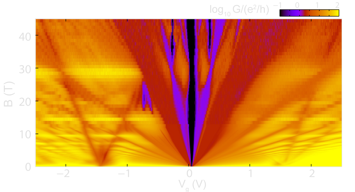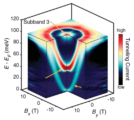 A new wafer with a wider quantum well than we’ve used previously has begun providing fantastic new data. Single atom fluctuations in the width of the quantum well broaden TDCS features in energy. With the wider quantum well, these width variations are less important. The new spectra reveal quantum Hall physics in astounding detail, as shown in the data taken at 1 Tesla above (compare with that in our recent Nature paper. At higher fields, we are beginning to understand how the fractional quantum Hall effect reveals itself in the single particle spectrum, while at lower fields we’re pinning down the properties of a previously unobserved coupled electron-plasmon excitation.